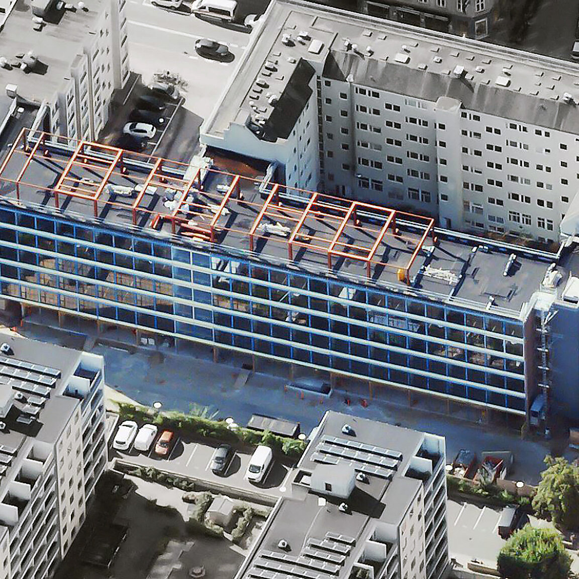 - Fast 50 % Einsparung grauer Emissionen durch den Erhalt der Bausubstanz.