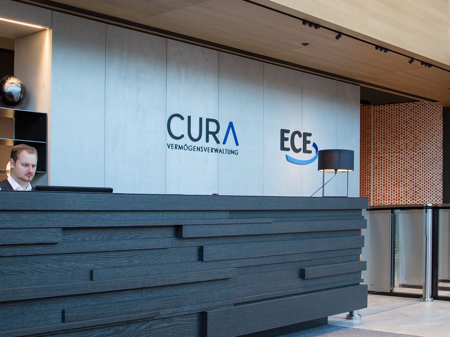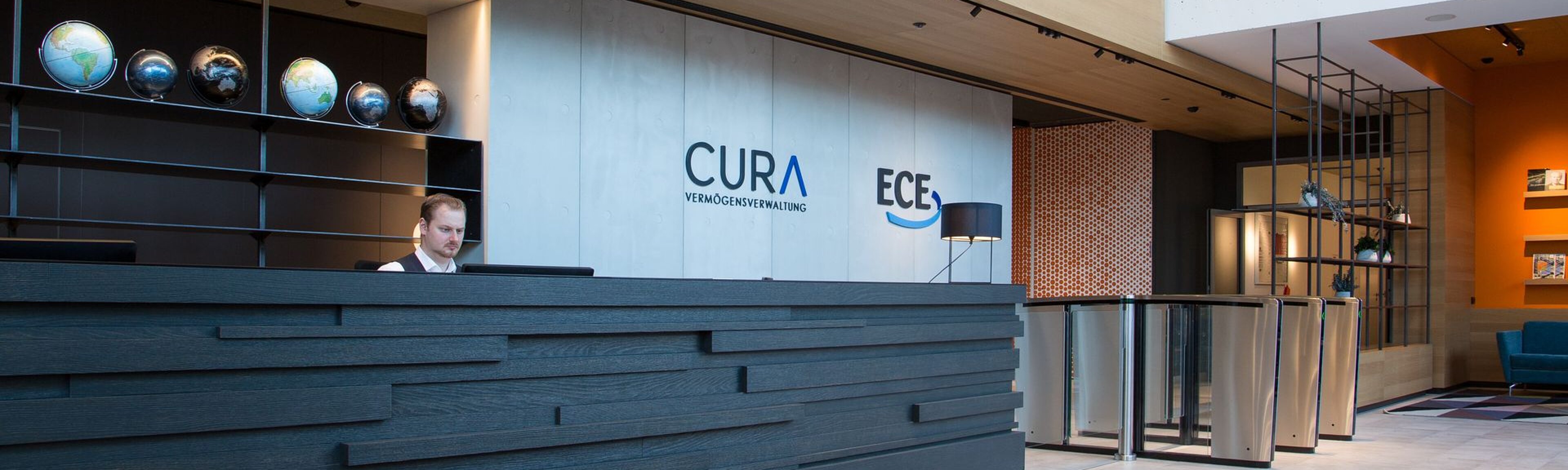 Ein Mann sitzt hinter der Rezeption der ECE Vermögensverwaltung