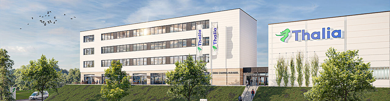 Thalia ist in den vergangenen Jahren durch die Weiterentwicklung seines Omni-Channel-Geschäftsmodells stark gewachsen und heute marktführend in der deutschen Buchhandelsbranche. Das Unternehmen baut daher mit dem neuen Omni-Channel-Hub seine Leistungsfähigkeit weiter aus: In mehreren Entwicklungsstufen werden daher eine Vielzahl unterschiedlicher Nutzungen und Prozesse von der Warenkommissionierung bis hin zu innovativen Produktionstechnologien am neuen Standort in Marl realisiert.