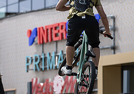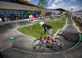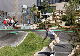 Auf einer Fläche von 5.000 m² im Center sowie weiteren 3.000 m² im Außenbereich laden ab sofort zahlreiche neue Retail-, Produkttest- und Erlebnisflächen zum Ausprobieren und Erleben von Produkten ein – darunter ein Pumptrack für Bikes, Skates und Boards, eine Boulder-Kletterwand, ein Trail-Wanderweg, Fahrrad-Teststrecken sowie Motorik- und Spielebereiche für Kinder.