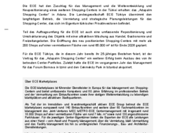 Für die ECE Türkiye, die in diesem Jahr bereits ihr 25-jähriges Bestehen feiert, ist der Vertrag für das „Adapalm Shopping Center“ ein weiterer Erfolg beim Ausbau des von ihr betreuten Center-Portfolios. Zuletzt hatte die ECE im vergangenen Jahr das Management für das Forum Bornova in Izmir und den Cekmeköy Park in Istanbul akquiriert.