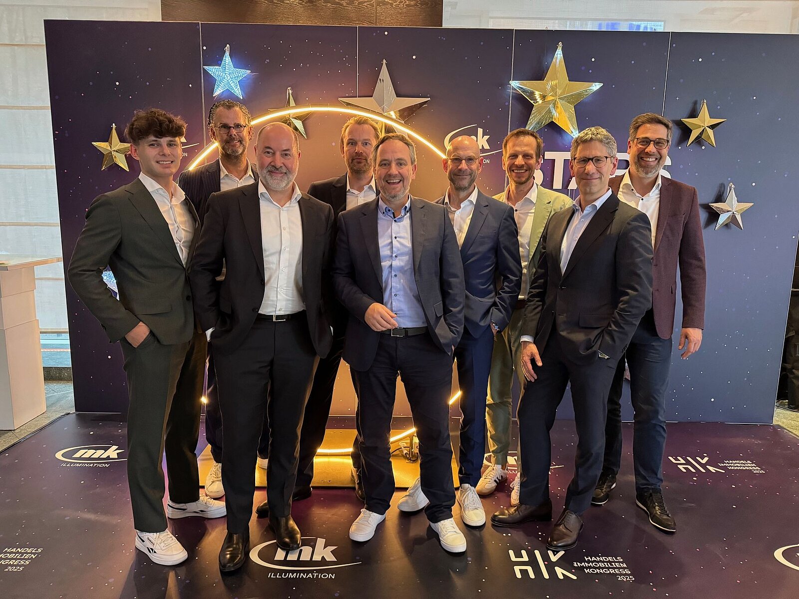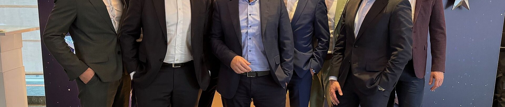Eine Gruppe von mehreren Personen im Anzug steht vor der Kamera.
