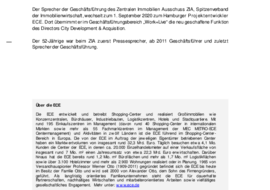 Der Sprecher der Geschäftsführung des Zentralen Immobilien Ausschuss ZIA, Spitzenverband der Immobilienwirtschaft, wechselt zum 1. September 2020 zum Hamburger Projektentwickler ECE. Dort übernimmt er im Geschäftsführungsbereich „Work+Live“ die neu geschaffene Funktion des Directors City Development & Acquisition.