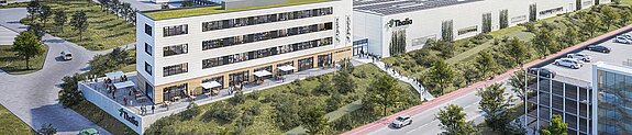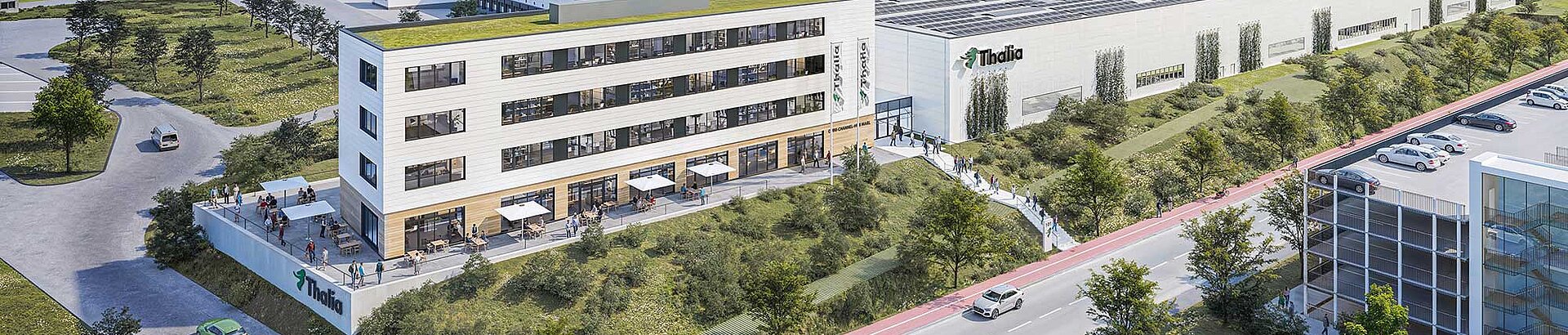 Die Immobilie wird aus mehreren hochwertig gestalteten Hallenbereichen sowie einem mehrgeschossigen Bürogebäude bestehen und modern gestaltete Arbeitsplätze, eine eigene Kantine sowie umfangreiche und großzügig ausgelegte Sozialbereiche umfassen. In mehreren Entwicklungsstufen wird Thalia dort eine Vielzahl unterschiedlicher Nutzungen und Prozessen von der Warenkommissionierung bis hin zu innovativen Produktionstechnologien ansiedeln. Das Investitionsvolumen liegt bei insgesamt rund 100 Millionen Euro.