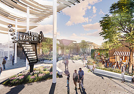Inmitten des Freiluft-Shopping-Centers in Sulzbach bei Frankfurt am Main entsteht mit dem „Food Garden“ eine neue, lebendige Mitte mit einem hochwertigen, abwechslungsreichen Gastronomieangebot mit fünf freistehenden Restaurantgebäuden mit teils überdachten, teils offenen Terrassen, attraktiven begrünten Außenflächen und anspruchsvoller Architektur. Die neuen Gebäude entstehen zudem mit besonderem Fokus auf Nachhaltigkeit und werden komplett in Holzbauweise und damit aus einem nachwachsenden Rohstoff errichtet.