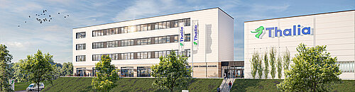 Mit dem ersten Spatenstich hat Thalia den Baustart für seinen neuen Gewerbe- und Produktionsstandort, entwickelt von ECE Work & Live, im Gewerbegebiet Marl gefeiert.