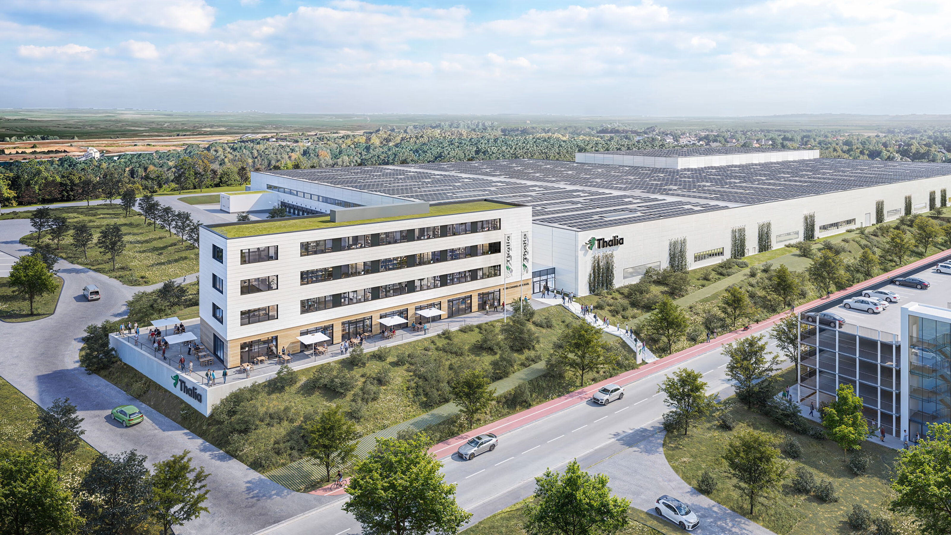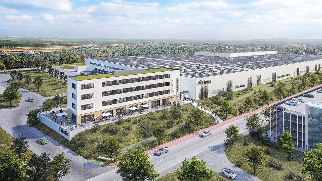 Für Thalia realisieren wir im neu entstehenden Gewerbegebiet gate.ruhr in Marl einen hochmodernen, maßgeschneiderten Omni-Channel-Hub. Bei der Planung und Umsetzung der Gewerbeimmobilie steht der Nutzer von Anfang an im Mittelpunkt – genauso wie die Themen Nachhaltigkeit und Innovation.