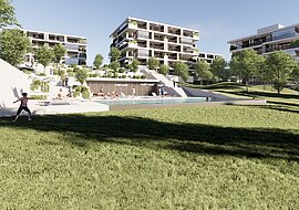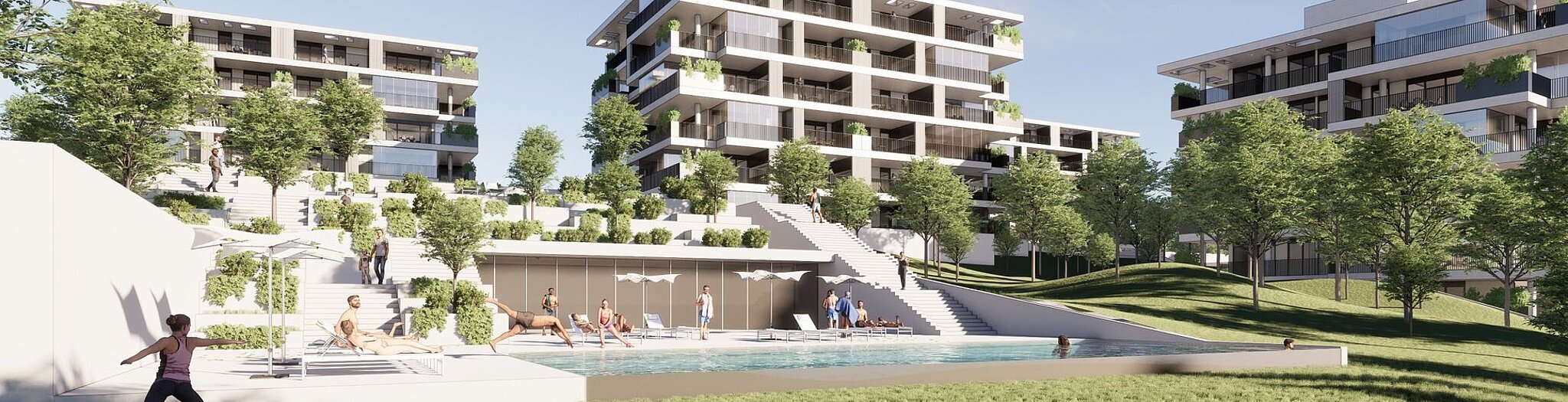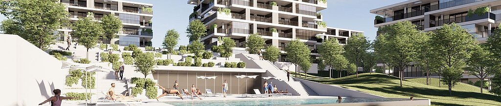 The modernly designed apartments will feature spacious balconies and terraces and up to four bedrooms each. Attractive common areas will ensure a particularly high quality of living, including a lounge, a co-working area, a gym, as well as generous green spaces, a swimming pool and a special area for children.