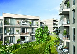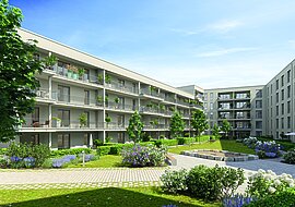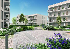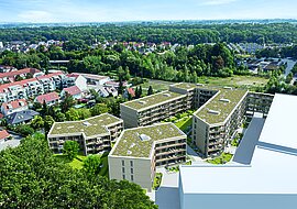 The "Anger Quartier" is located in a good residential area in southern Freising and is within walking distance of the city center of the district and university town as well as the state capital of Munich by local train. The apartments have one to five rooms as well as a terrace, garden, balcony or loggia, are between 46 and 130 m² in size and are spread over a total of five modern, energy-efficient buildings surrounded by green spaces. The buildings will be executed to the Efficiency House 55 standard, and energy will be supplied by the district's own combined heat and power plant operated by Stadtwerke Freising.