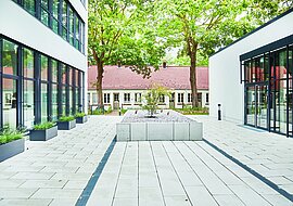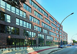 Campus Hamburg offers state-of-the-art offices and is optimally designed for the work of the future - with flexible floor plans and a modular building structure, a variable combination of open office areas as well as combined or individual offices, landscaped courtyards and roof terraces, a shared conference center and a cafeteria. The building was planned and implemented by ECE with a consistent focus on sustainability and was therefore awarded the DGNB certificate in gold.