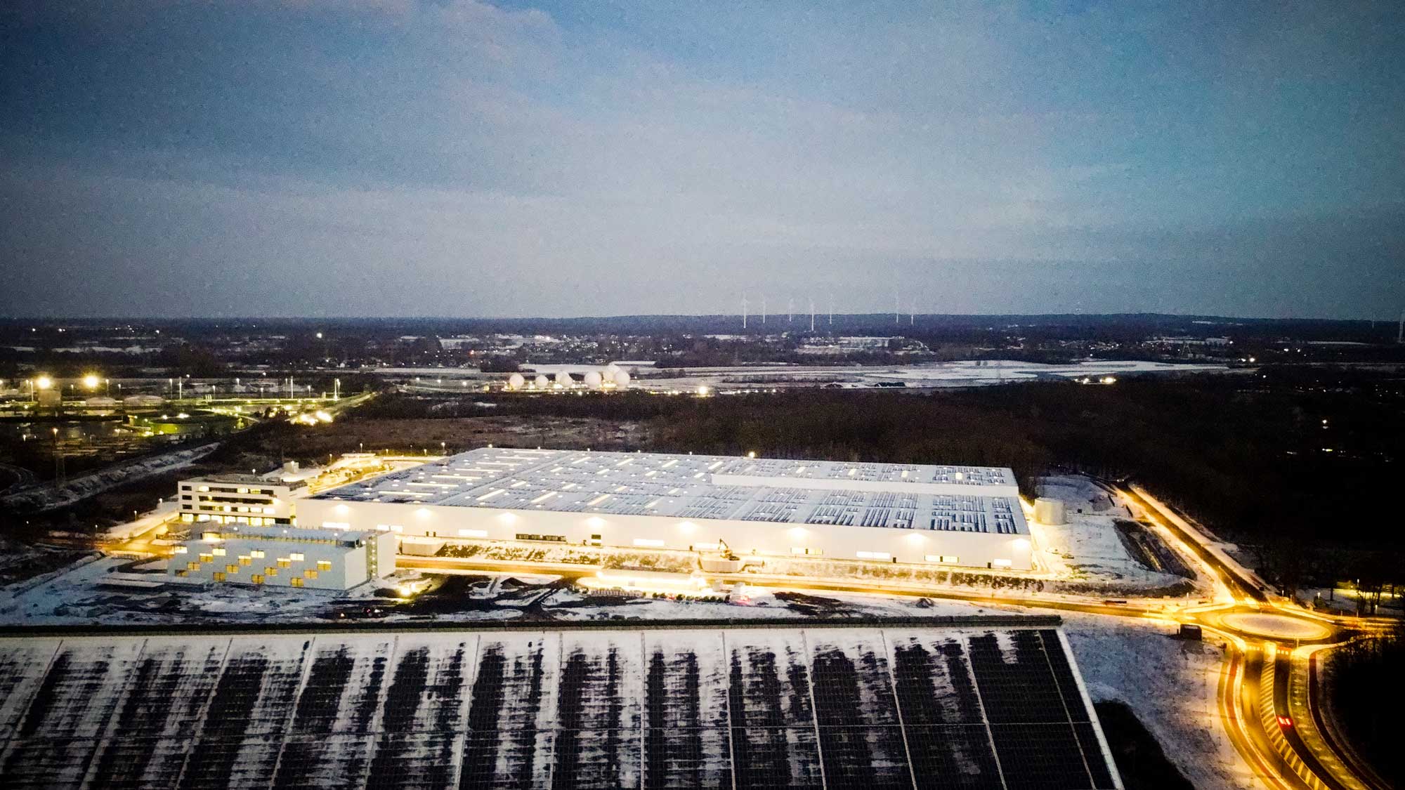 After around one year of construction and with an investment of €100 million, a 56,000 m² commercial and production property has been created in the gate.ruhr industrial park in Marl, North Rhine-Westphalia. It consists of several high-quality hall areas, a multi-story office building, a parking garage with around 500 spaces, and 200 covered bicycle parking spaces. The site includes modern workspaces for up to 1,000 employees, its own cafeteria, and extensive, generously designed social areas.