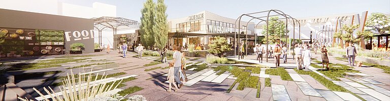 Currently, the area is already being used successfully with a new gastronomy concept: On an area of more than 1,000 m², a total of ten food trucks and sales stands offer a variety of food and beverages in the open air – and the temporary offer is already very well received by the center's customers.