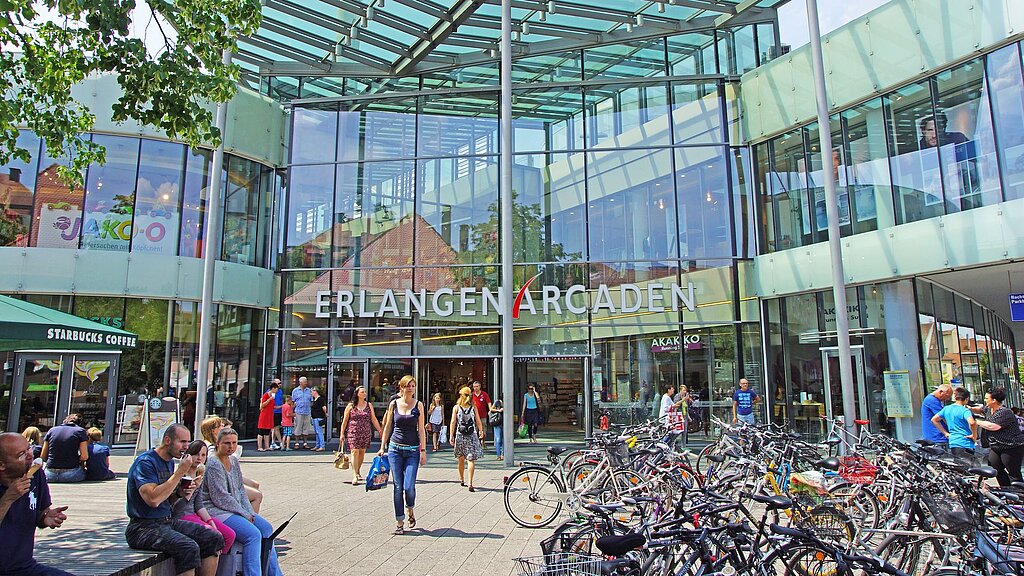 Erlangen Arcaden, which opened in 2007, has around 90 stores with a total sales area of around 30,000 m² and is located directly next to the train station and the pedestrian zone in downtown Erlangen, a city with a strong economy and 110,000 residents located in the German state of Bavaria. In its catchment area, which has about 400,000 inhabitants, the center has a strong market position and is visited by around 10 million people each year. Its anchor tenants include Saturn, Thalia and tegut. The Erlangen Arcaden shopping center was completely refurbished in 2017/18 and thanks to the addition of new concepts and the expansion of its dining options it offers even greater upside potential.