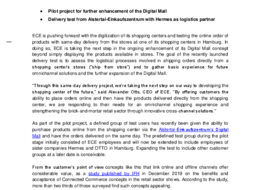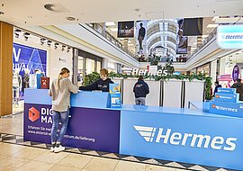 During the pilot project, the logistics process will be implemented and tested in collaboration with Hermes Germany. To handle the delivery processes, Hermes set up a pop-up parcel shop at Alstertal-Einkaufszentrum which, in addition to providing the standard services, also collects, packages, and delivers the Digital Mall orders from the shops at the center. In addition to same-day delivery, Hermes also offers both standard shipping services and the ability to pick up packages from the parcel shop (“Click & Collect”). During the pilot stage, the project participants will be able to quickly and easily gain initial insights into the required logistics processes.