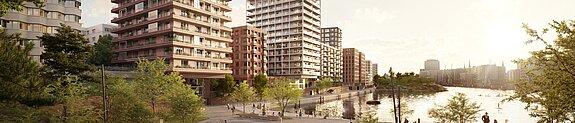 ECE Work & Live in cooperation with Harmonia Immobilien is developing TIDE as a major part of the mixed-use building ensemble: several residential buildings with around 600 high-quality owner-occupied and rental apartments in a double waterfront location facing the Elbe and Baakenhafen and with views over the city. Another building will house a student dormitory of the Studierendenwerk Hamburg (Hamburg Student Union) with about 370 residential spaces as well as the UBS Digital Art Museum as a cultural and tourist attraction. In addition, there will be a daycare center, commercial space and restaurants.
